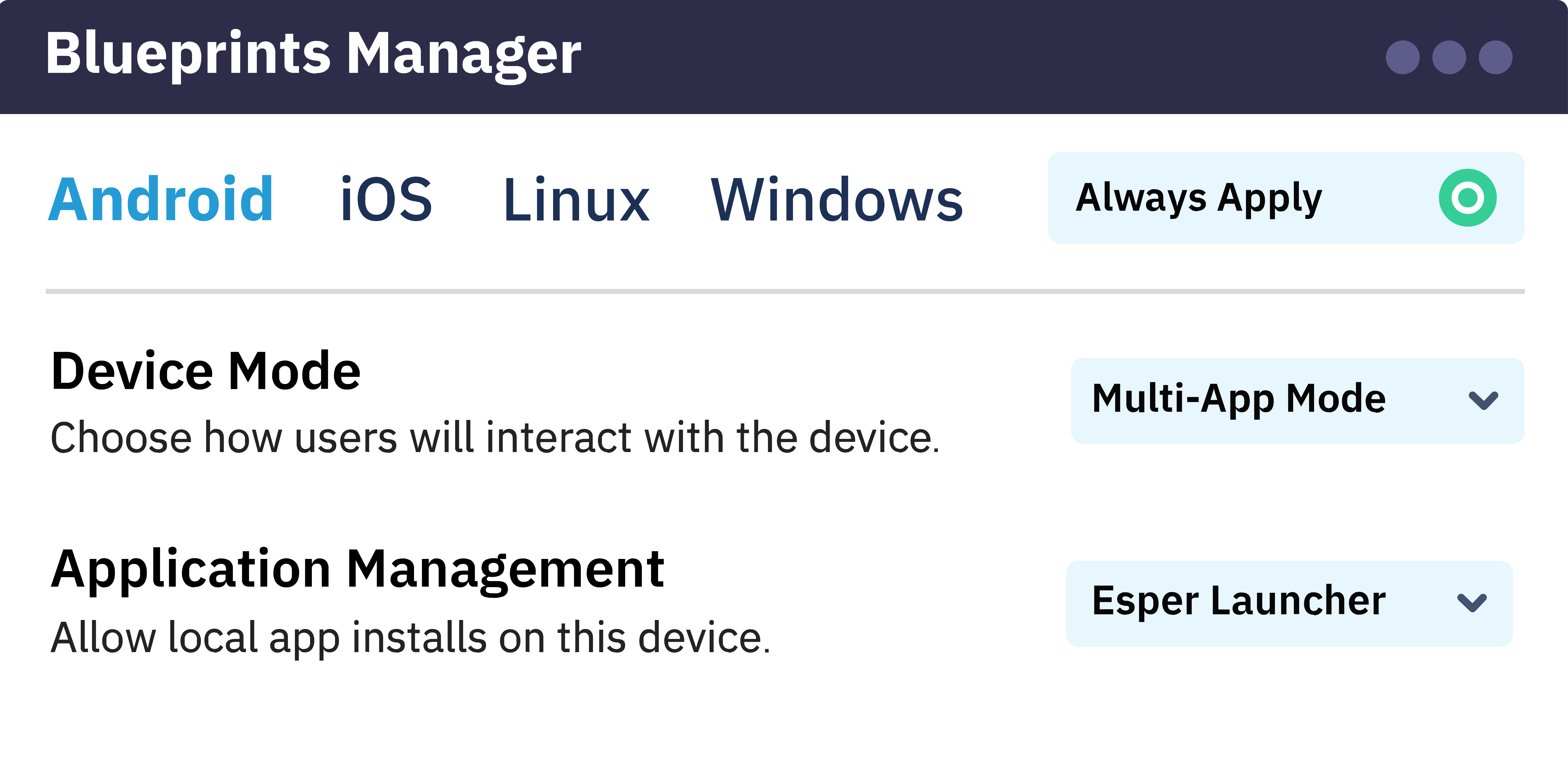 The next step in MDM. Esper Genesis simplifies device management and policy enforcement with intuitive tools designed specifically for small businesses.