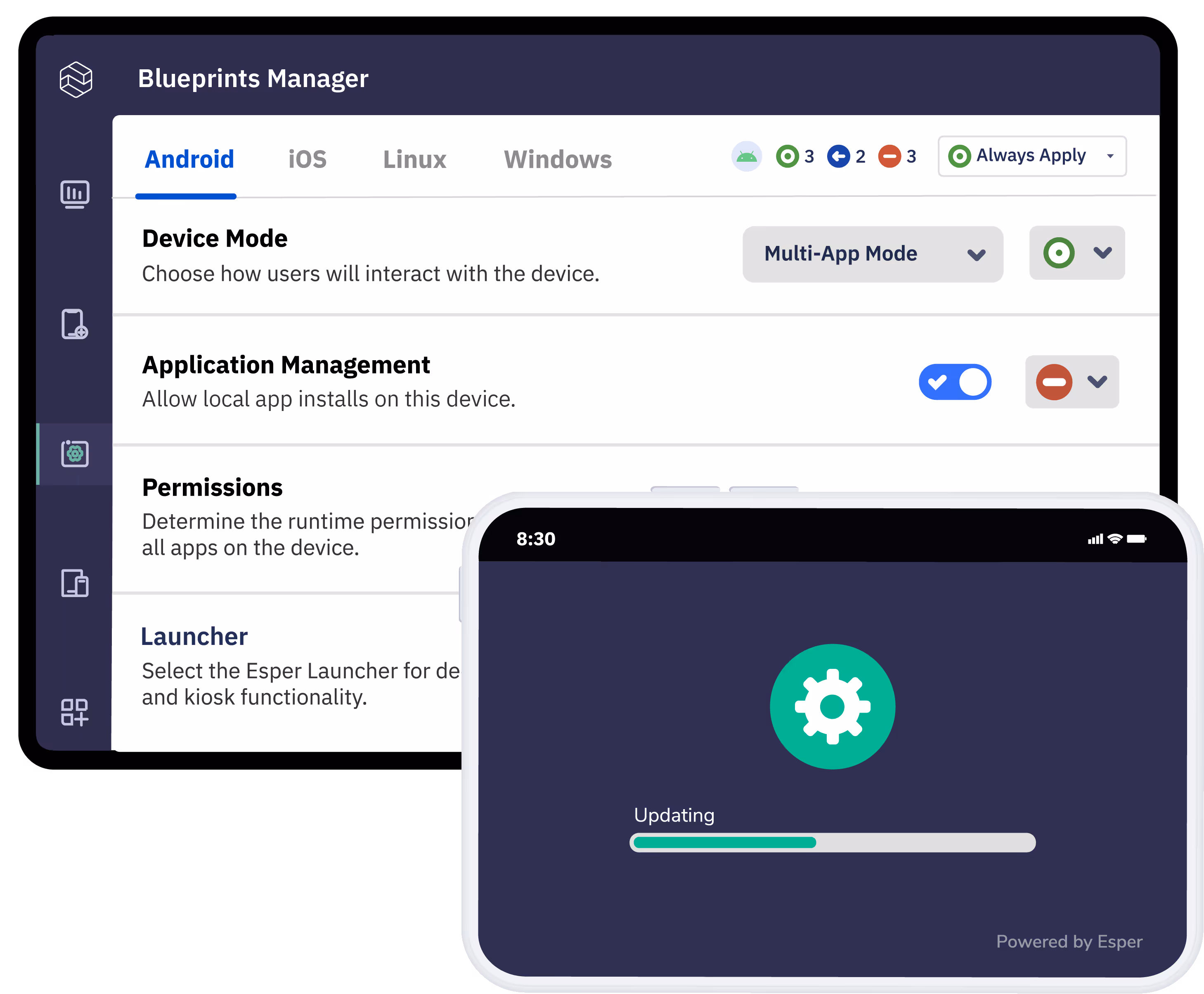The next step in MDM. Esper Genesis simplifies device management and policy enforcement with intuitive tools designed specifically for small businesses.
