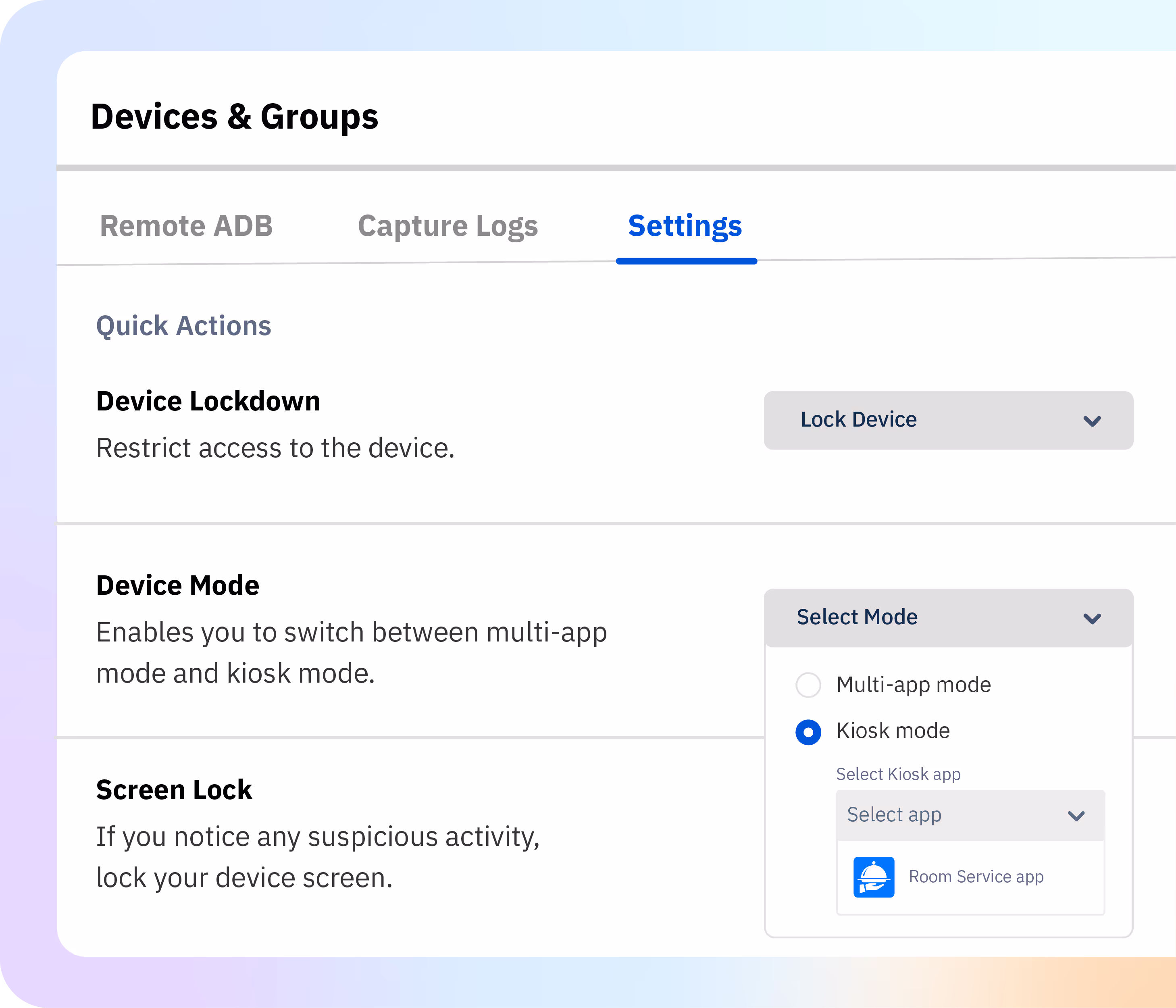 Managing Android devices doesn’t have to be complicated. With a seamless, granular approach, our platform simplifies managing your entire fleet — all from a single pane of glass.