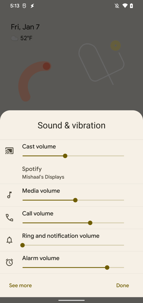 This regression is easy to reproduce and affects all devices running Android 12 versions prior to release 26, which was uploaded to AOSP last week. As documented on the Google Issue Tracker, simply open a music streaming app that supports the Cast SDK, pick an external device to stream audio to, exit the app while music is playing, and then press either the volume up or volume down key on the device. The volume slider will appear, but the current volume of the remote media session will not be shown nor will it change. The logcat output shared by the developer who first reported the issue confirms that the MediaSessionService is not dispatching volume key events to apps.