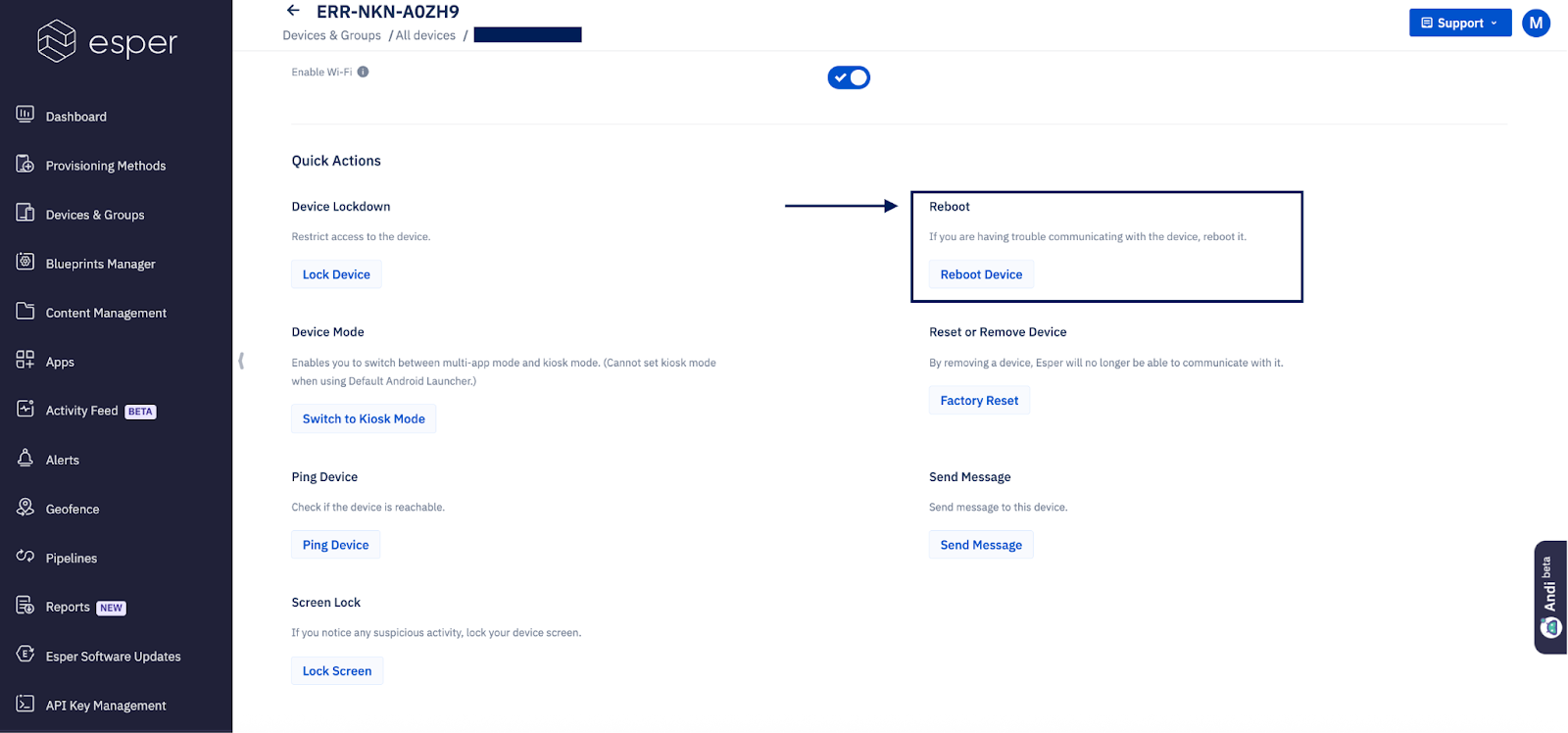 - Button Name: Reboot Device