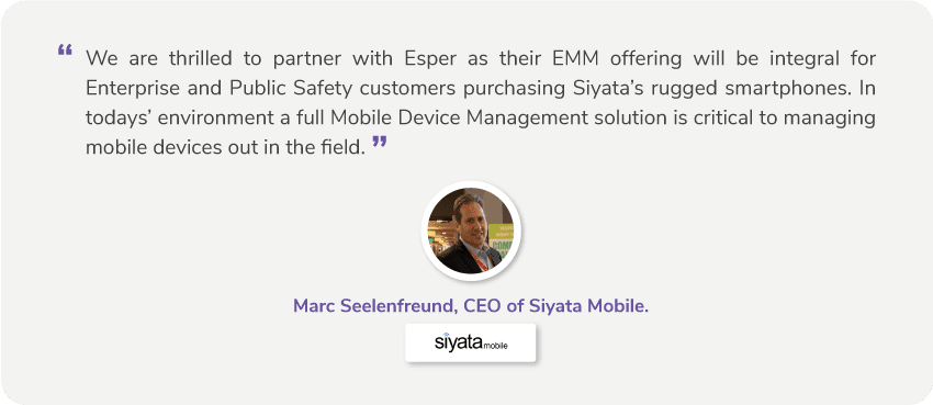 Esper will leverage financial strength into building and innovating the infrastructure our customers need to manage their device fleets seamlessly. This latest funding round will primarily be used to expand Esper’s ability to get in front of more enterprise customers. This means expanding our hardware and software partnerships like Siyata for first responders.