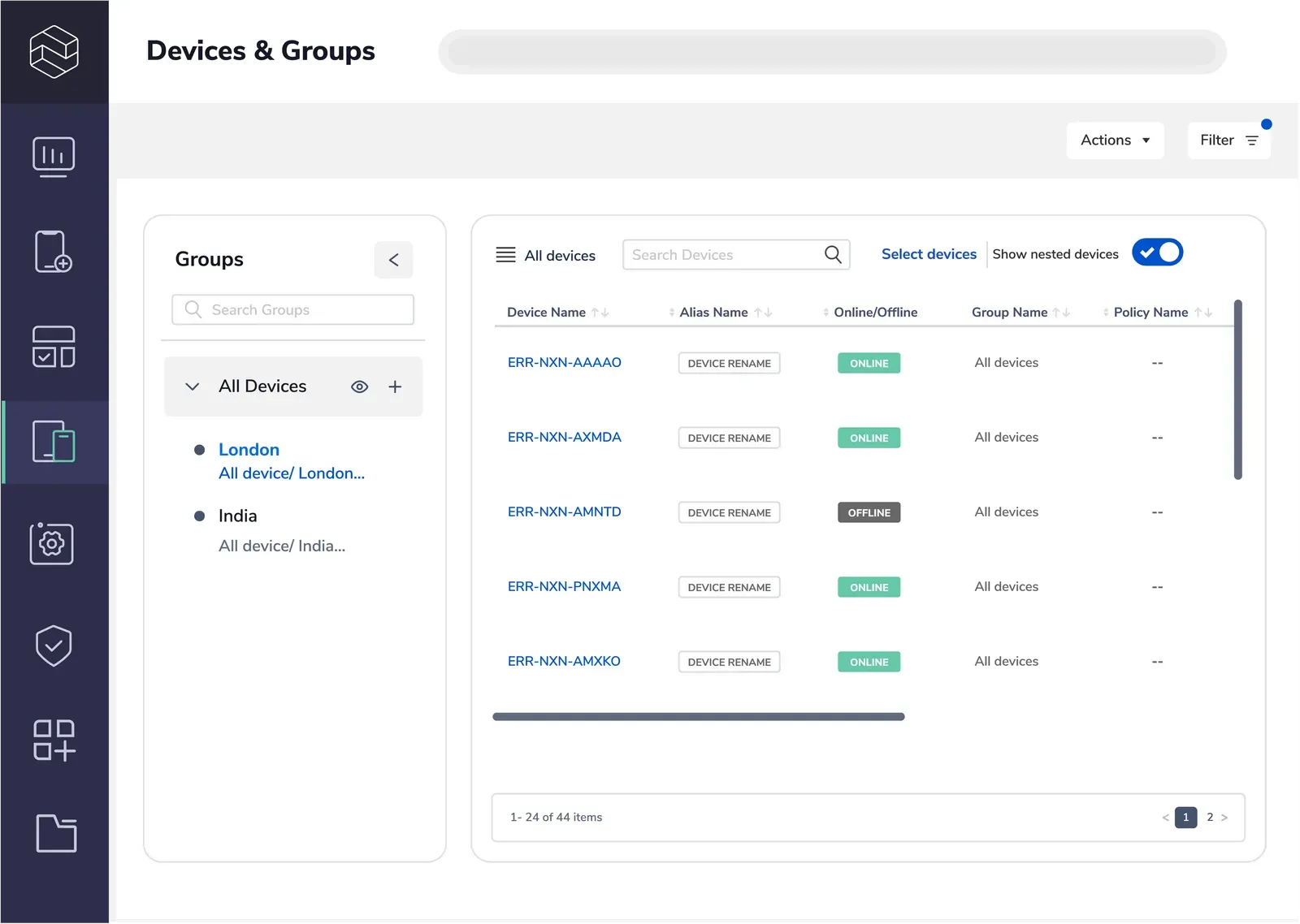 Whether you have 100 or 10,000 devices, you should be able to manage them in a way that makes sense. Esper Genesis gives you complete remote management, device grouping, and update control all at your fingertips — even across mixed fleets of Android and iOS hardware.